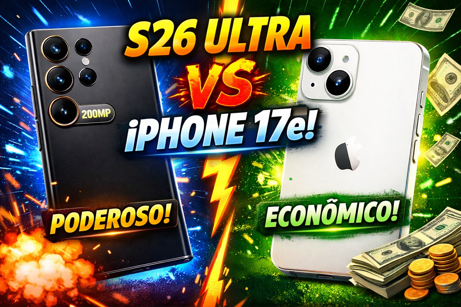 O iPhone 17e é mais barato, mas o S26 Ultra entrega mais recursos. Depende do seu orçamento.